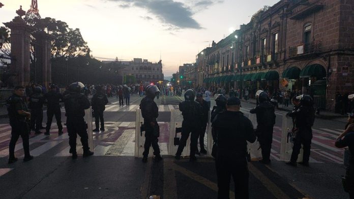 Morelia, Michoacán; 2 de noviembre de 2025.- El Palacio de Gobierno se encuentra resguardado por elementos de seguridad estatal, luego de los actos vandálicos registrados esta tarde en el Centro Histórico de Morelia, informó el secretario de Gobierno, Raúl Zepeda Villaseñor.