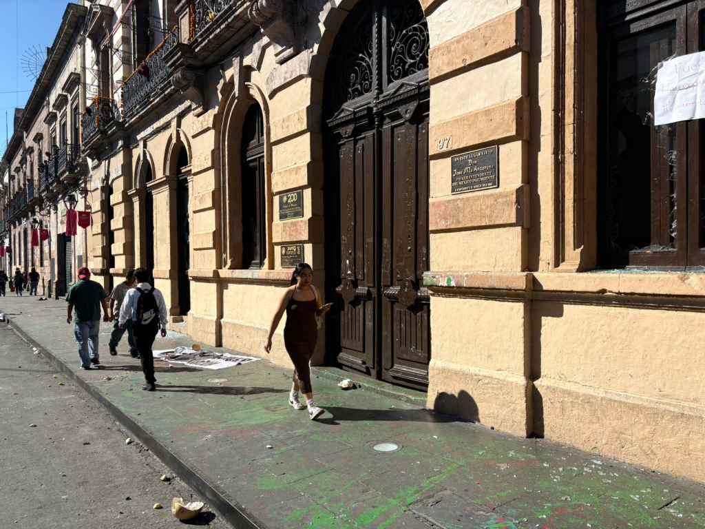 El Congreso del Estado concluyó con varias intervenciones, así como parte de la estructura que se encontraba resguardando la entrada principal de la puerta de Palacio Municipal, hasta el momento no se cuenta con un estimado en daños por dichos hechos.