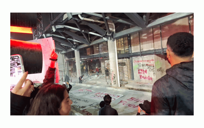 Uruapan, Mich.- 03 de noviembre de 2025.- La noche este lunes, decenas de jóvenes se manifestaron en las estaciones del Teleférico de la Presidencia Municipal y Plaza Ágora, las cuales vandalizaron y posteriormente fueron replegados por elementos de la Unidad de Restablecimiento del Orden Público, de la Guardia Civil, extraoficialmente habría al menos 5 personas requeridas.