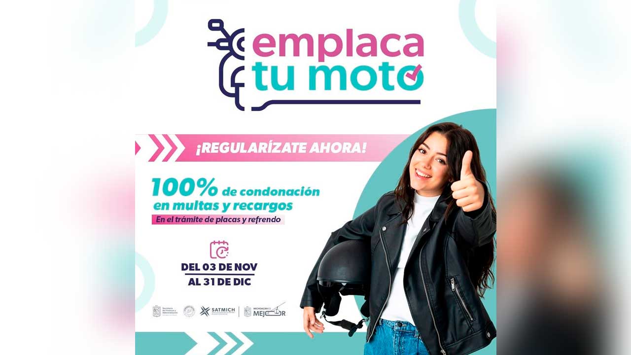 Respecto a las motocicletas regulares que adeudan refrendos, el Satmich les condonará las multas correspondientes, lo cual podrán llevar a cabo en línea, con tarjeta de crédito o débito, o generar una línea de pago y hacerlo en efectivo en sucursales bancarias, centros comerciales y tiendas de autoservicio.