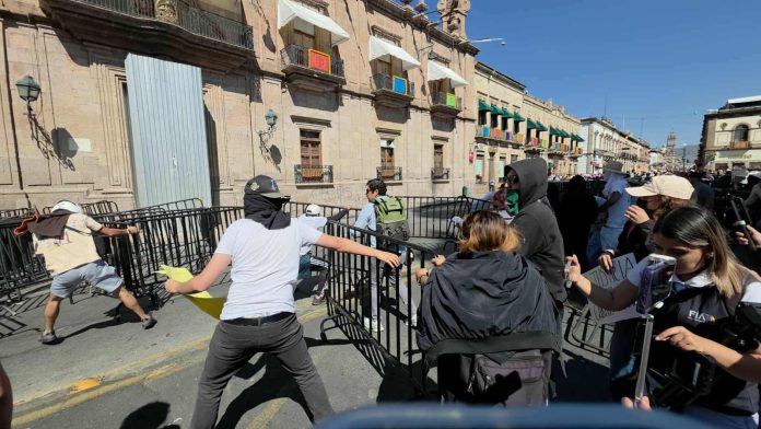 Morelia, Mich.- Martes 04 de noviembre de 2025.- Ocho de los once detenidos que participaron en los disturbios ocurridos durante los últimos días en el Centro Histórico de Morelia continúan a disposición de la instancia competente, la cual aún no les resuelve su situación jurídica, comentaron fuentes allegadas al tema.