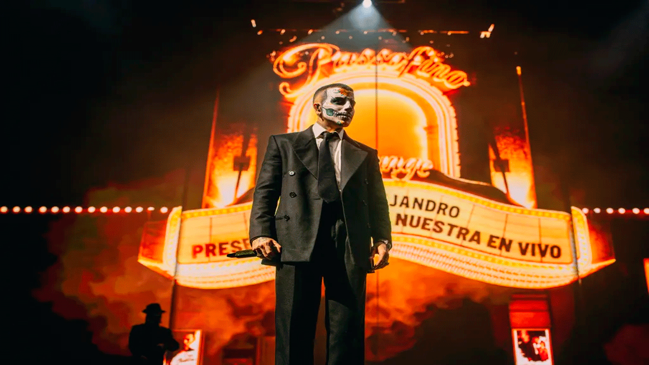 Aunque el dress code oficial del tour combina lo retro y tropical (plumas, boinas, brillos y trajes sesenteros), Rauw decidió darle un giro muy especial para esta fecha. Con el rostro pintado y acompañado de sus bailarines y músicos también caracterizados, el intérprete de “Todo de ti” conquistó a su público con un gesto que unió la cultura boricua y mexicana en una sola celebración.