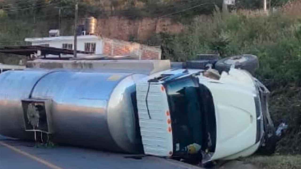 Charo, Mich.- Jueves 06 de noviembre de 2025. – Un camión pipa volcó sobre la carretera Morelia-Toluca, también conocida como camino a Mil Cumbres, dentro del municipio de Charo, en los límites con la capital michoacana, informaron fuentes allegadas al tema.