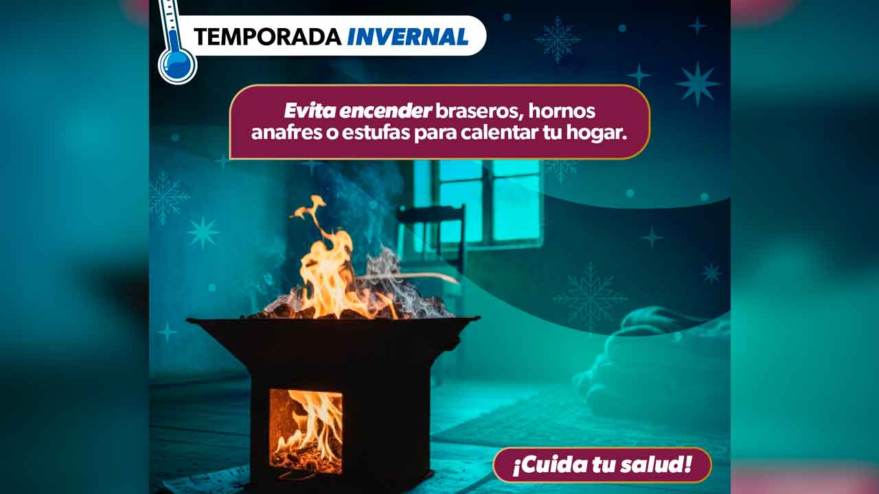 Por ello, es fundamental mantener una buena ventilación en los hogares, cuando se enciendan estufas de gas o de leña, anafres o calentones, dejando puertas y ventanas abiertas para facilitar la circulación de aire y se debe evitar utilizarlos para calentar habitaciones durante la noche o mientras se duerme.