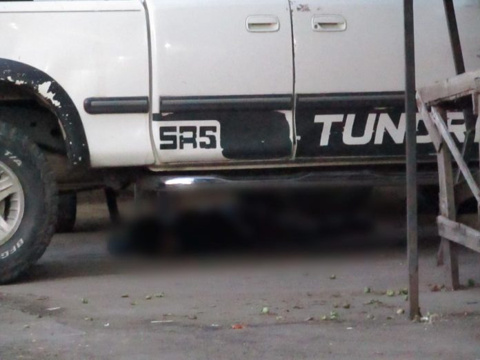 Elementos de la Dirección de Seguridad Pública y Tránsito Municipal se trasladaron al lugar, donde tirado junto a una camioneta de color blanco encontraron al muchacho tirado boca abajo con varios impactos de bala.