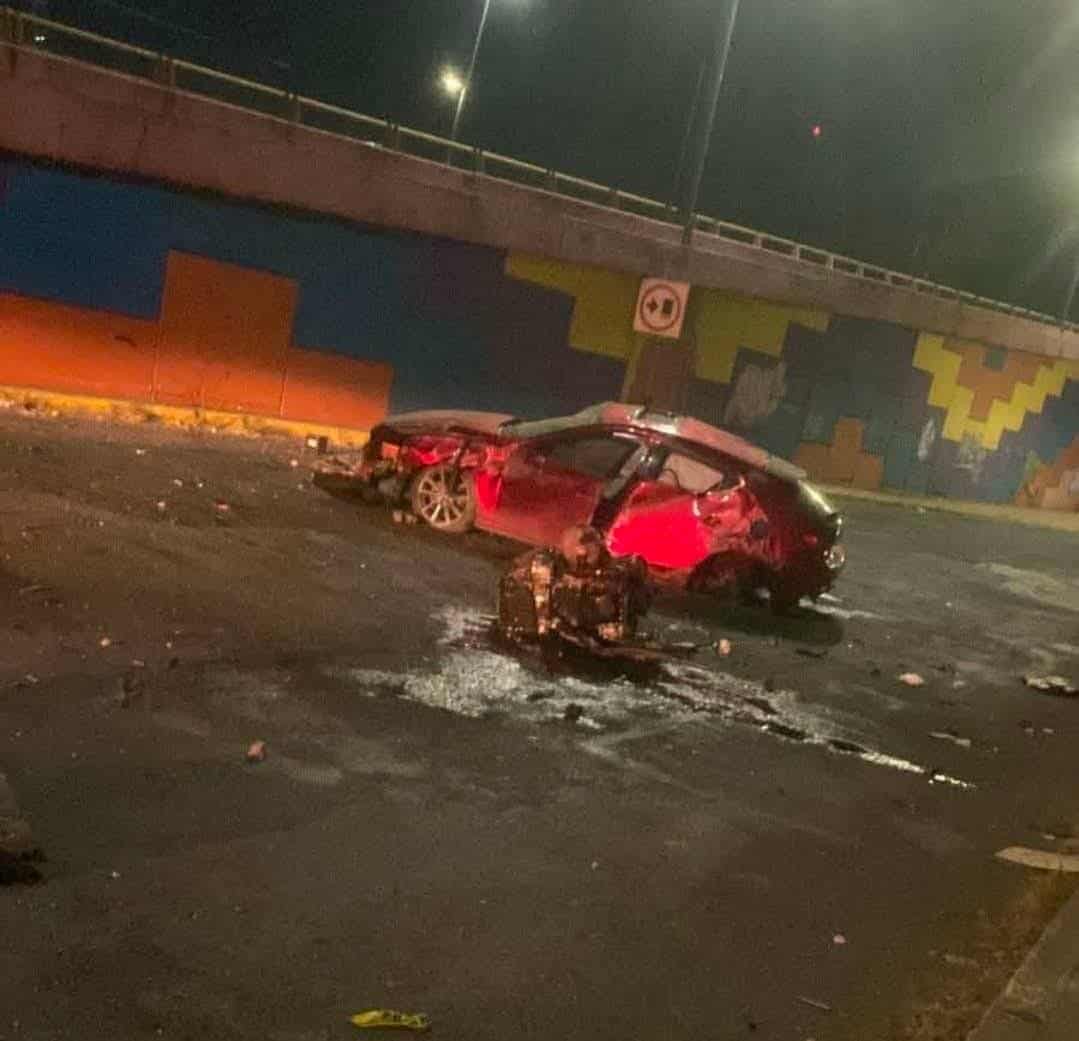 Morelia, Mich.- Domingo 09 de noviembre de 2025.- Un automóvil terminó bastante perjudicado tras accidentarse sobre una de las laterales del Libramiento Norponiente de la ciudad de Morelia, en las cercanías del Estadio Morelos. Afortunadamente, sólo hubo daño materiales, comentaron fuentes allegadas al tema.