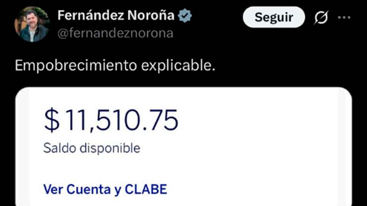 Ciudad de México. — El senador Gerardo Fernández Noroña generó controversia en redes sociales luego de compartir una imagen de su cuenta bancaria, en la que se observa un saldo de 11 mil 510 pesos con 75 centavos, acompañada del mensaje: “empobrecimiento explicable”.
