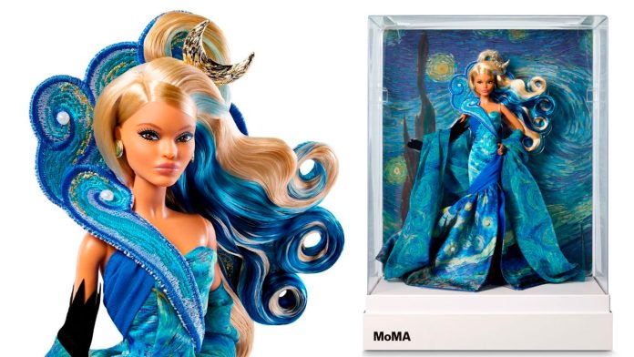 La empresa Mattel, Inc. ha anunciado el lanzamiento de una edición especial de su muñeca Barbie inspirada en la obra La noche estrellada de Vincent van Gogh. Con un precio de 160 dólares USD (aproximadamente 3 450 pesos mexicanos) y disponible en tiendas específicas, esta pieza forma parte de una cápsula de colección lanzada en colaboración con el Museum of Modern Art (MoMA).
