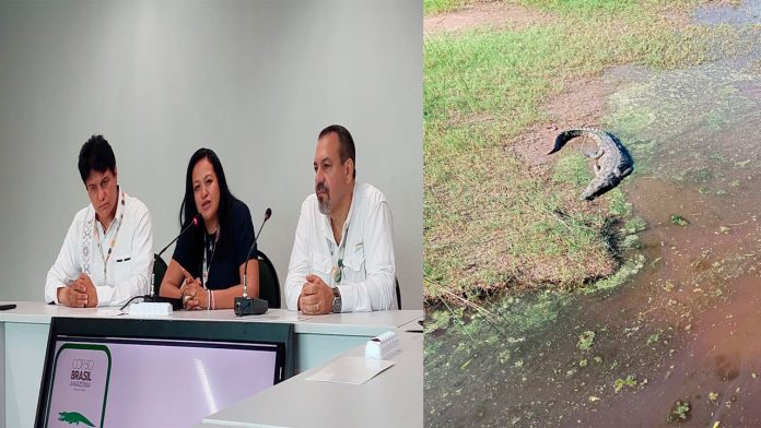 Morelia, Michoacán, 13 de noviembre de 2025.- Durante la Conferencia de las Partes (COP 30) de la Convención Marco de las Naciones Unidas, que se realiza en Belém do Pará, el secretario del Medio Ambiente, Alejandró Méndez López presentó el proyecto de instalación de un cocodrilario ecoturístico, para el manejo y aprovechamiento sustentable cocodrilo de río y cocodrilo de pantano, en el Área Natural Protegida de El Manglito, municipio de Lázaro Cárdenas.