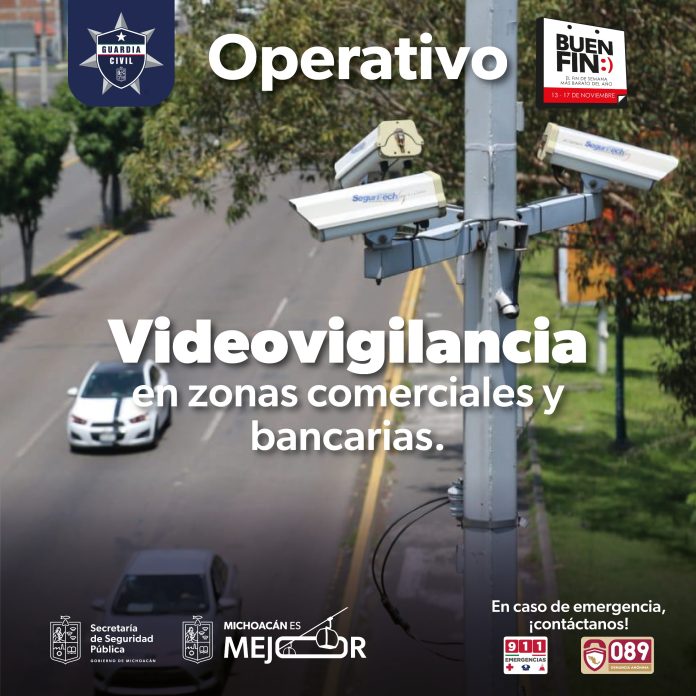 Morelia, Michoacán, 14 de noviembre de 2025.- Con motivo del Buen Fin 2025, la Secretaría de Seguridad Pública (SSP) ha desplegado un dispositivo integral de seguridad, prevención y vigilancia en toda la entidad. Este operativo se realiza en el marco del fin de semana de mayores ofertas comerciales del año.