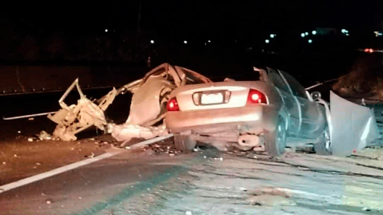 El lamentable accidente se registró anoche, en las cercanías de las instalaciones de Grúas Urtaza, donde un vehículo Nissan Sentra de color gris, con placas PNL-447-D, chocó contra la barrera de concreto qué divide ambos sentidos.