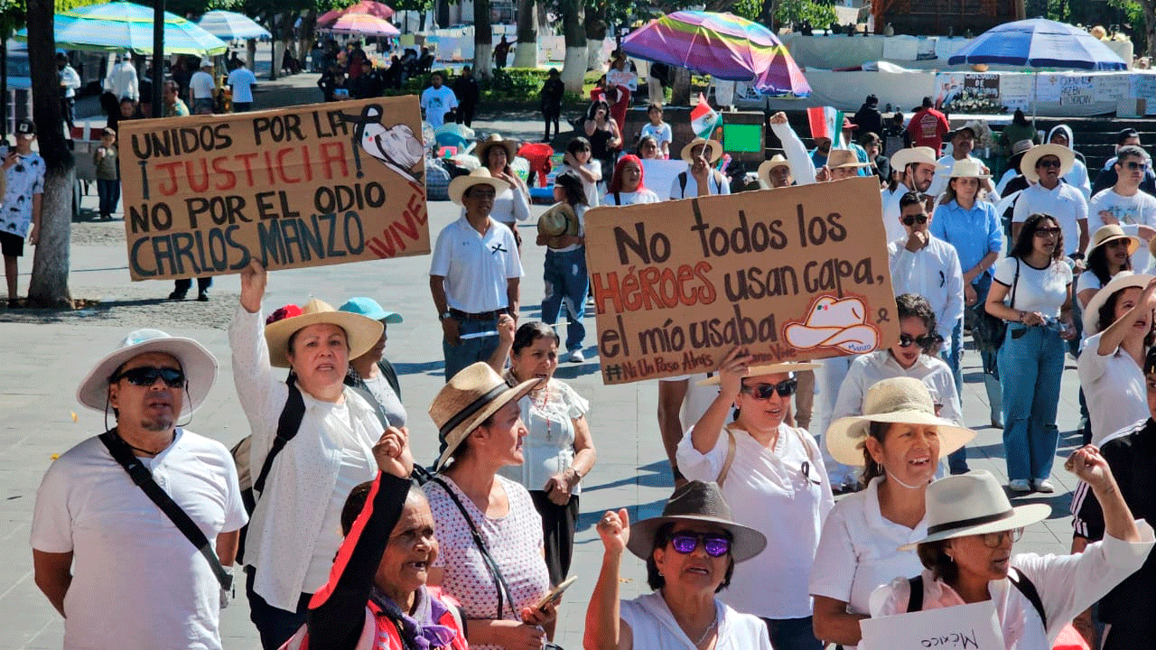 La manifestación recorrió más de 40 cuadras hasta arribar hasta el Centro de la ciudad. Mientras iba avanzando la protesta se unieron otros tantos seguidores del Movimiento del Sombreo, logrando duplicar el grueso de la contingente, al grito de “alto a la violencia” y “Carlos Manzo vive, su lucha sigue”.