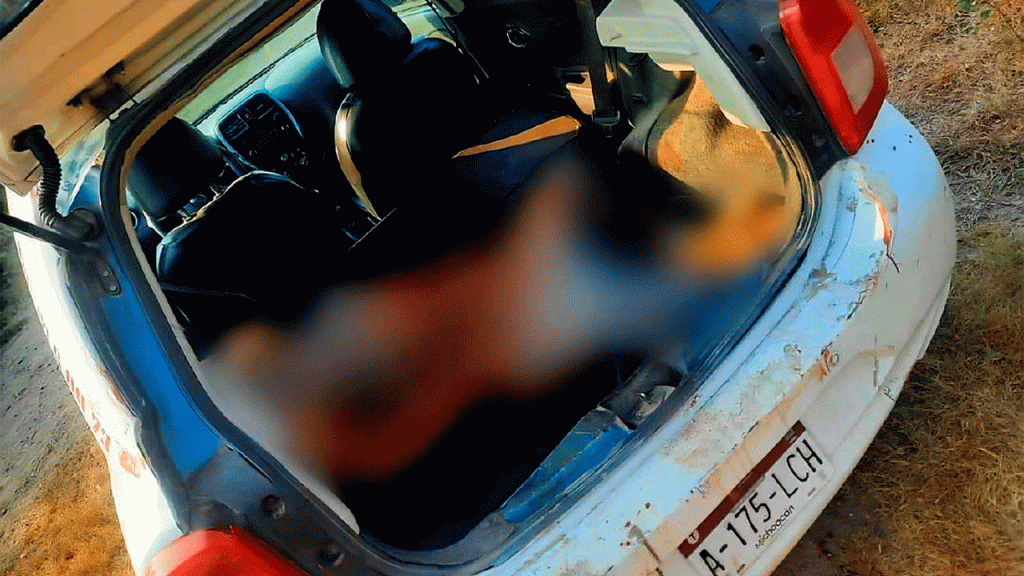 Lázaro Cárdenas, Mich.- 16 de noviembre de 2025.- Un masculino ejecutado fue localizado en la cajuela de un taxi, en una brecha del municipio de Lázaro Cárdenas, con lo que son ya tres personas asesinadas en esta demarcación durante las últimas horas.