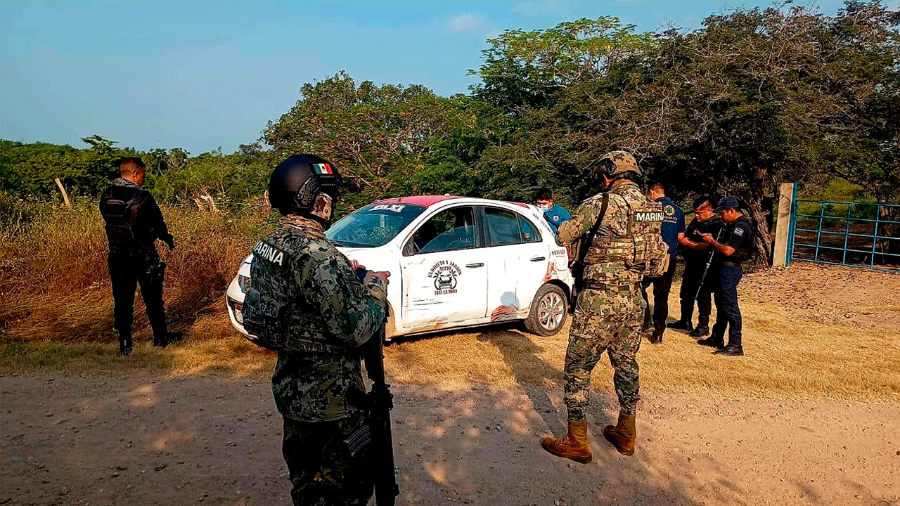 Para atender la denuncia ciudadana oficiales de la Guardia Civil y de la Secretaría de Marina, junto con paramédicos se movilizaron al citado lugar, donde hallaron taxi Nissan March, de color blanco, con placas A175LCH y al revisar la unidad descubrieron el cadáver con impactos de bala en la cabeza.