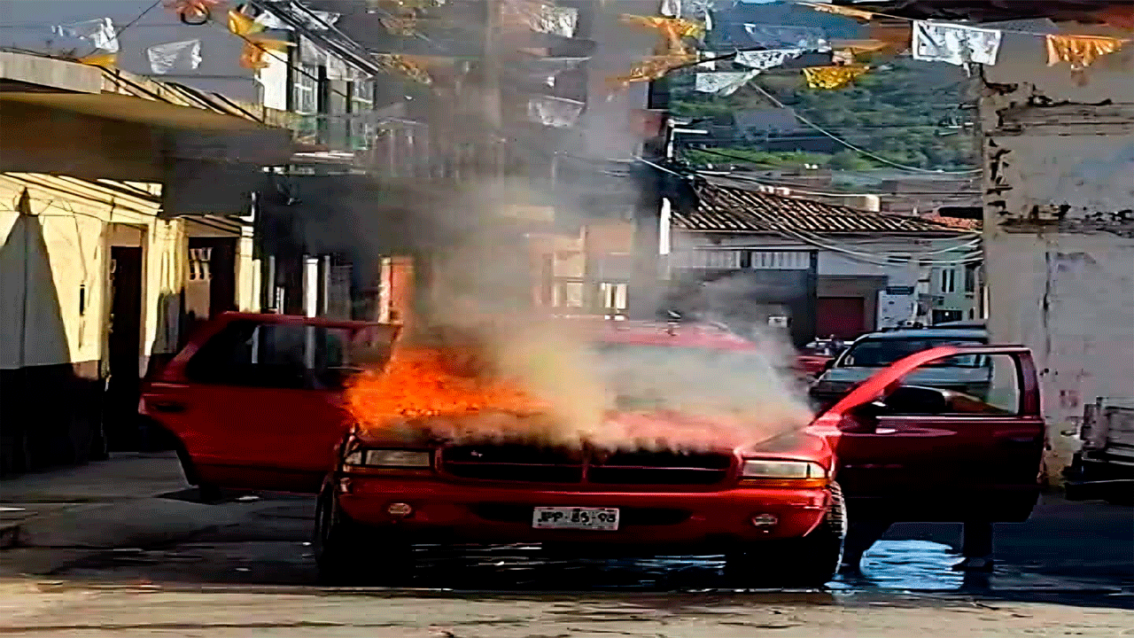 Trascendió que la lumbre perjudicó el área del motor. La unidad afectada es una Dodge Durango de color rojo, con matrícula JPP8593, la cual fue retirada por una grúa para despejar el camino.