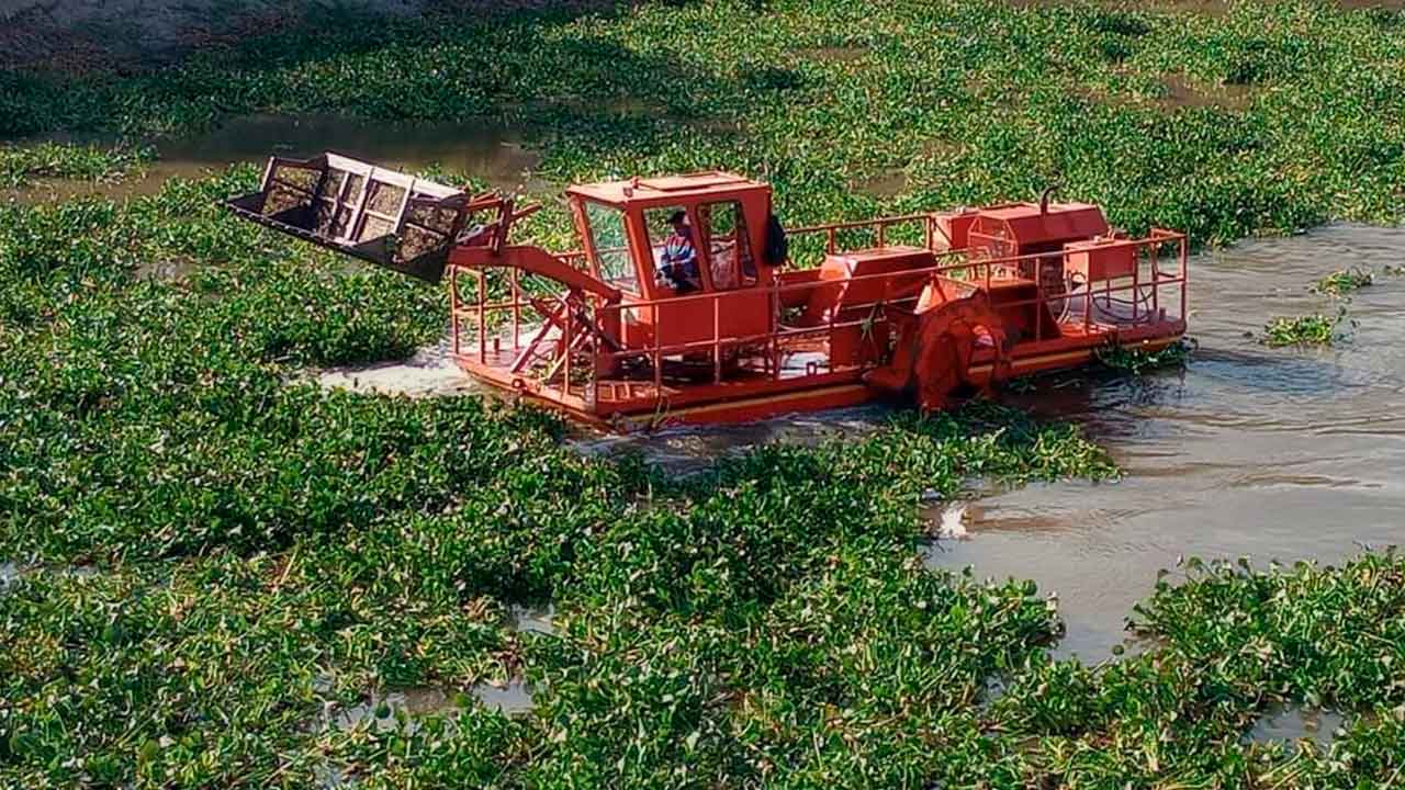 • Se han completado 800 metros en el retiro de lirio acuático con maquinaria especializada