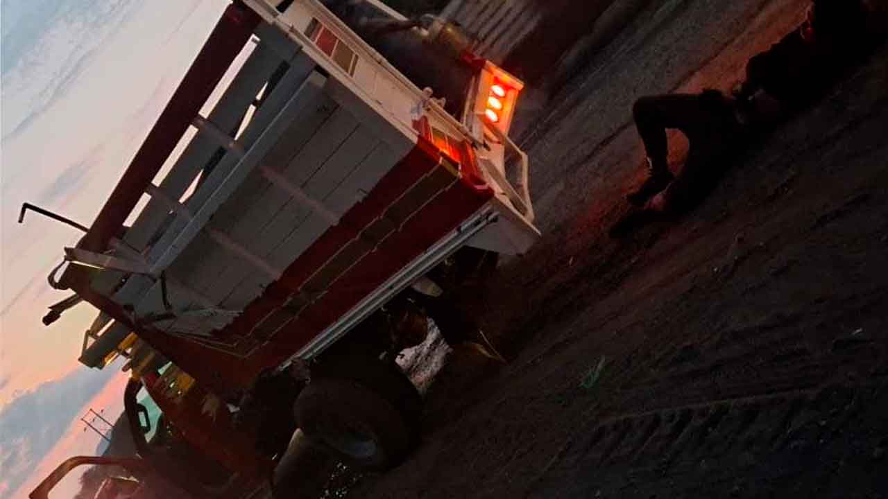 Al respecto se pudo establecer que la mañana de este jueves, una camioneta doble rodado de color rojo con blanco, se dirigía a campos de pepino cuando protagonizó un choque volcadura a la altura del puente de las vías férreas.