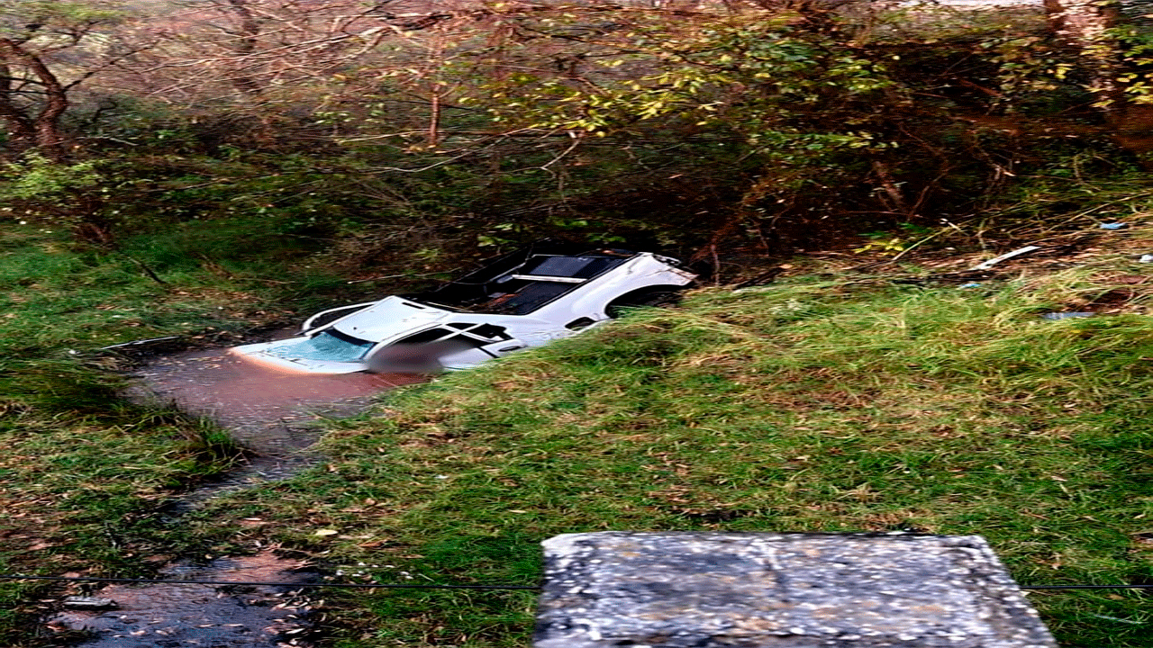 Quiroga, Mich-. 22 de noviembre de 2025.- Una camioneta se salió del camino, para terminar dentro de un canal de agua a un costado de la carretera Morelia Quiroga. El conductor de dicha unidad falleció en el lugar.