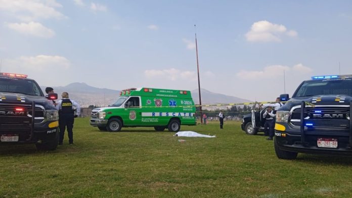 Morelia, Mich.- Sábado 22 de noviembre de 2025.- Un adulto mayor sufrió un infarto cuando jugaba fútbol y murió en las instalaciones de la Liga Municipal de Fútbol Amateur Morelia, ubicadas frente a la colonia Sentimientos de la Nación, informaron fuentes policiales.