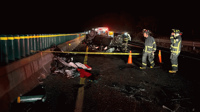Salvador Escalante, Mich.- 22 de Noviembre de 2025.- La madrugada de este sábado una camioneta protagonizó un choque volcadura, en la autopista Siglo XXI dejando como saldo un hombre muerto y una mujer lesionada de gravedad.