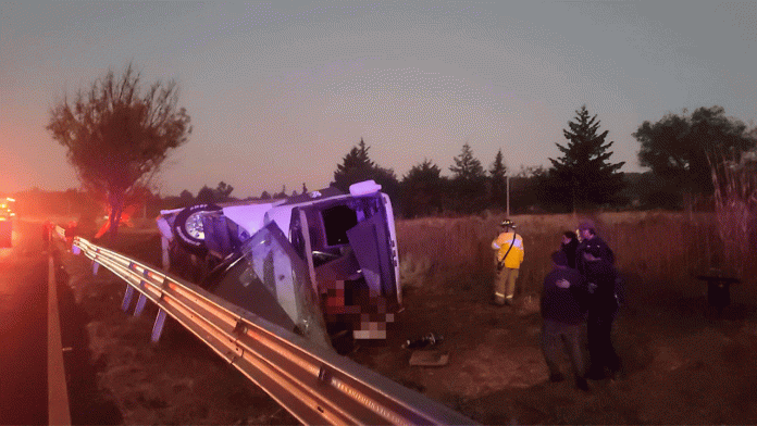 Policía Morelia trabaja en coordinación con cuerpos de emergencia para atender un hecho de tránsito en la carretera Morelia–Pátzcuaro, a la altura de Tiripetío, donde un autobús volcó, dejando como saldo personas lesionadas y fallecidas.
