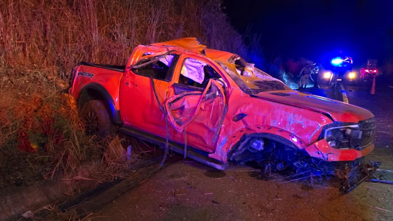 El aparatoso accidente ocurrió la madrugada de este domingo y tuvo lugar en el kilometro 266, del tramo Las Cañas – Feliciano, donde una camioneta Ford Ranger de color rojo, con placas NT-88-78C, terminó destrozada tras volcar.