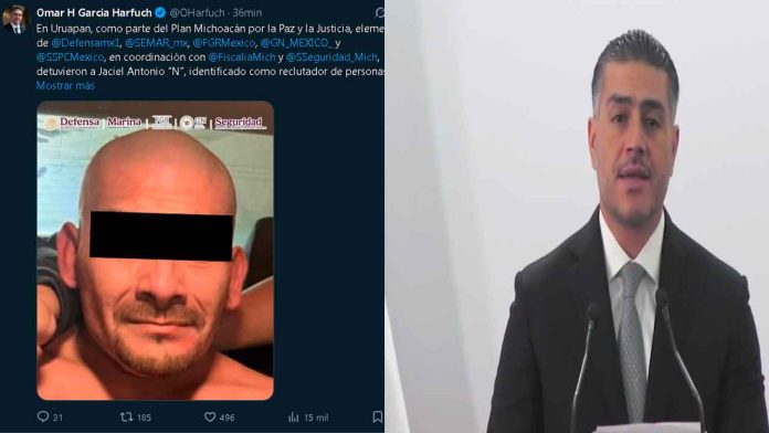 En el marco del Plan Michoacán por la Paz y la Justicia, autoridades federales y estatales lograron la detención de Jaciel Antonio “N”, identificado como presunto reclutador de personas para actividades criminales.