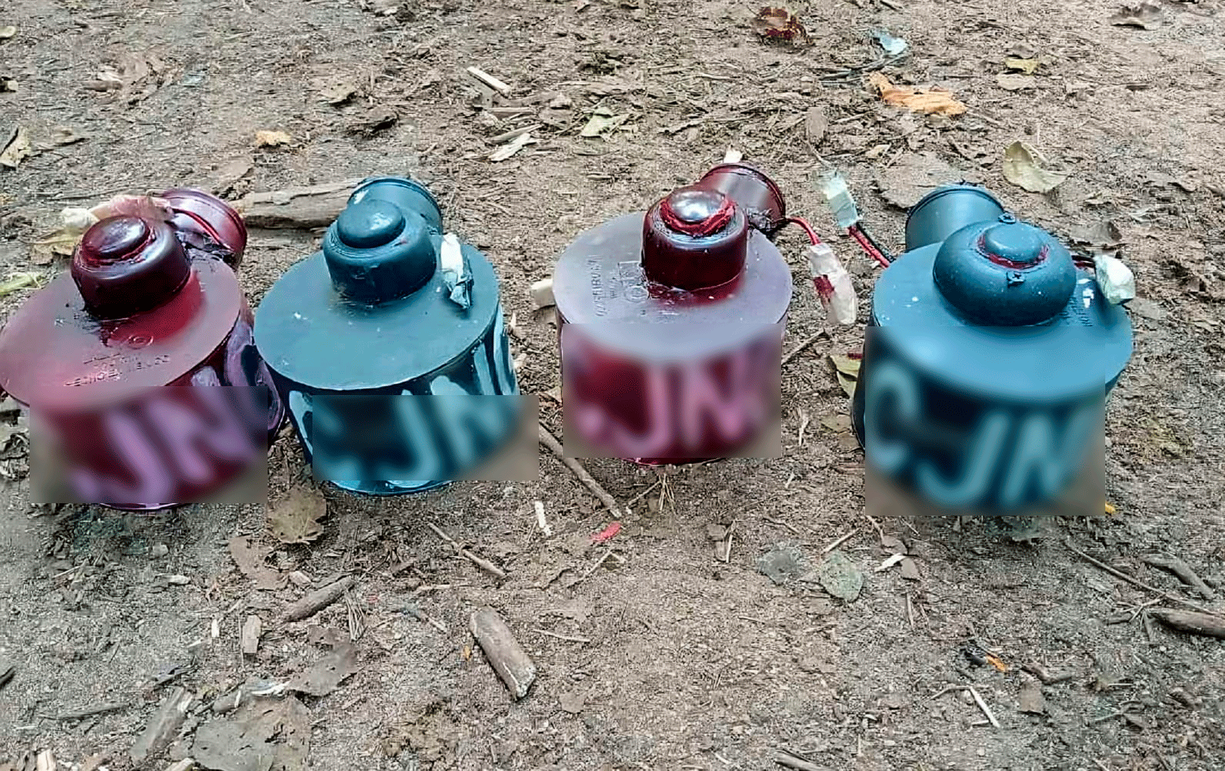 Trascendió que los elementos castrenses detectaron uno de los explosivos tipo mina y se desplegaron para realizar una inspección minuciosa, logrando ubicar 4 de los peligrosos objetos, todos ellos con las siglas CJNG.