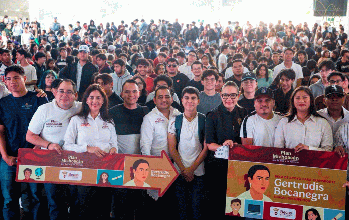 Por su parte, la secretaria de Educación, Gabriela Molina Aguilar, invitó a las y los estudiantes a ser voceros de este apoyo para que jóvenes de Nueva Italia, de la Huacana, de los diversos municipios michoacanos conozcan esta beca y accedan al beneficio.