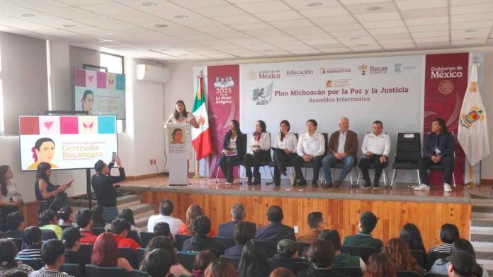 La Beca Gertrudis Bocanegra otorgará un apoyo de 1,900 pesos para transporte a estudiantes de nivel medio superior y superior en Michoacán. Este día dieron inicio las asambleas informativas en 121 escuelas, así como el proceso de registro y entrega de tarjetas. Con una inversión histórica de 769 millones de pesos, el programa beneficiará a 98,569 jóvene s michoacanas y michoacanos.