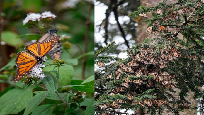 Las mariposas llegan al país luego de recorrer más de cuatro mil kilómetros desde Canadá y Estados Unidos, para buscar refugio en los bosques templados de oyamel que predominan en esta entidad, informó Roberto Monroy García, titular de la Secretaría de Turismo de México (Sectur).