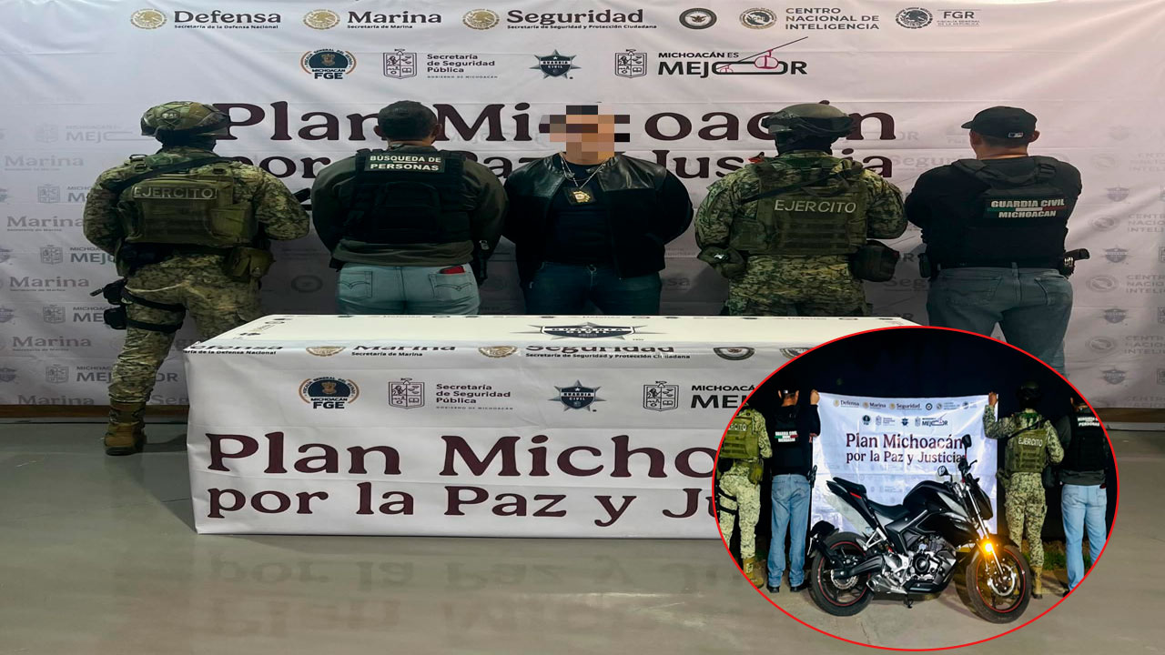 Morelia, Michoacán, 28 de noviembre de 2025.- Agentes de las secretarías de Seguridad Pública (SSP) y de la Defensa Nacional (Defensa) detuvieron en la ciudad de Morelia a un presunto asaltante de tiendas OXXO, como resultado de las acciones del Plan Paricutín.