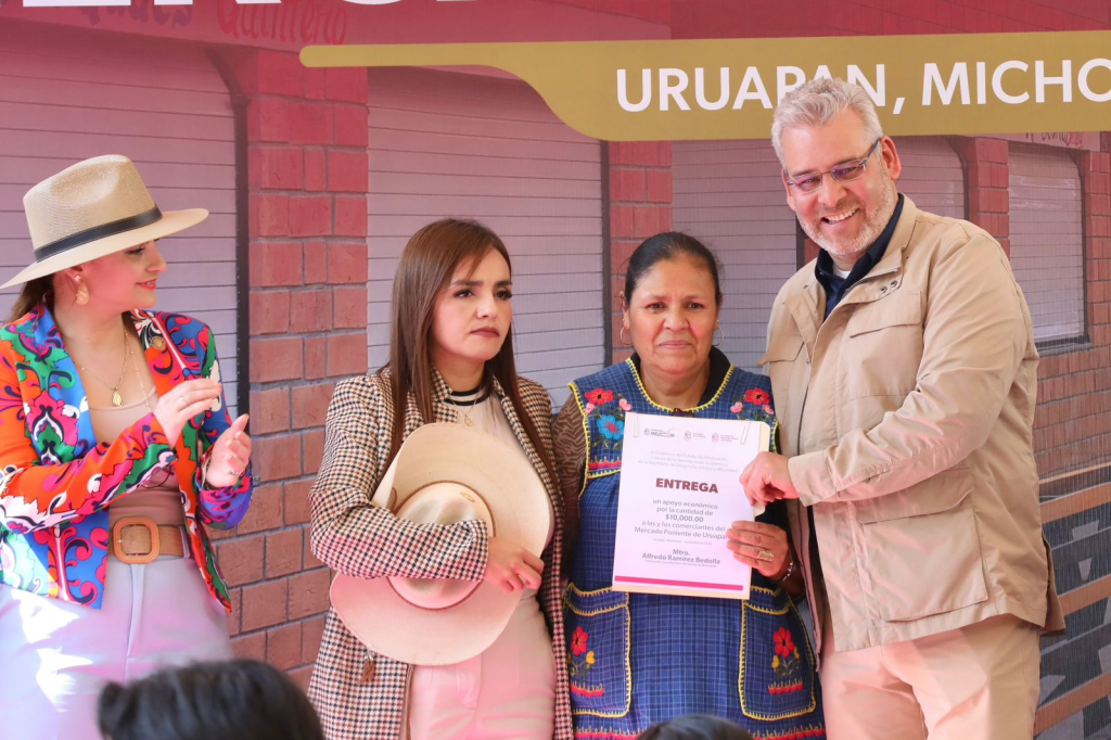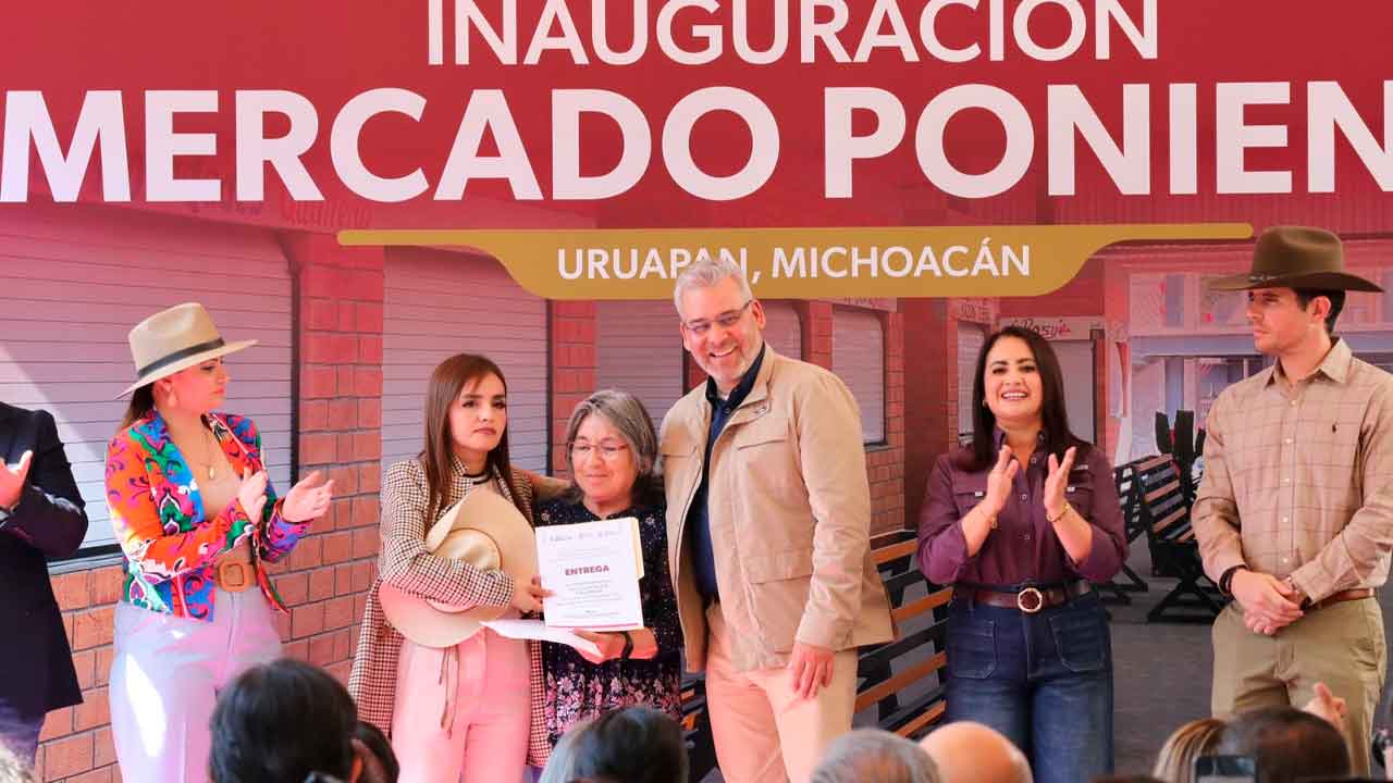 Uruapan, Michoacán.- En lo que fue su primer evento público como presidenta de Uruapan, Grecia Quiroz, viuda de Carlos Manzo, inauguró este viernes el Mercado Poniente junto al gobernador de Michoacán Alfredo Ramírez Bedolla.