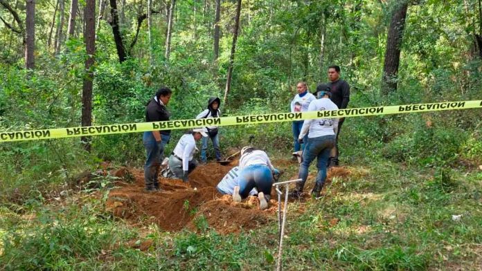 Uruapan, Mich.- Viernes 28 de noviembre de 2025.- Una fosa clandestina que contenía cuatro cadáveres fue localizada por colectivos de Madres Buscadoras en un predio perteneciente al diputado local independiente Carlos Alejandro Bautista Tafolla, en el municipio de Uruapan, informaron fuentes allegadas al caso.