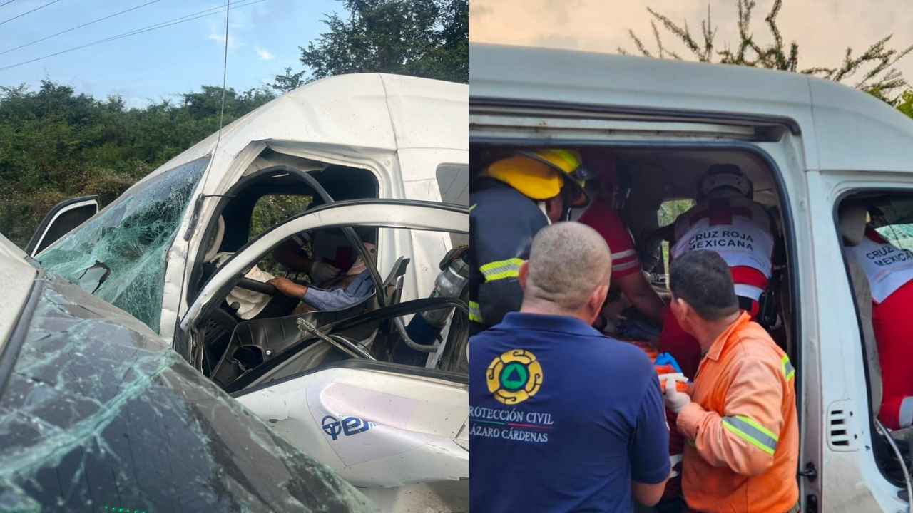 Lázaro Cárdenas, Mich.- 29 de Noviembre del 2025.- La mañana de este sábado, se registró un fatal accidente vehicular en la carretera Lázaro Cárdenas – La Mira, donde dos combis chocaron de frente, dejando como saldo tres personas fallecidas y 14 lesionados.