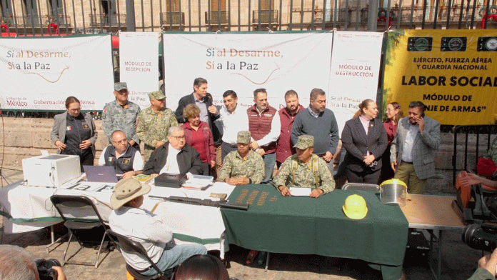 Morelia, Michoacán 29 de noviembre 2025.- La secretaria de Gobernación, Rosa Icela Rodríguez, informó que en Michoacán avanza con resultados positivos la estrategia “Sí al Desarme, Sí a la Paz”, una acción institucional destinada a invitar a la población a entregar de manera anónima y voluntaria sus armas de fuego a cambio de dinero en efectivo.