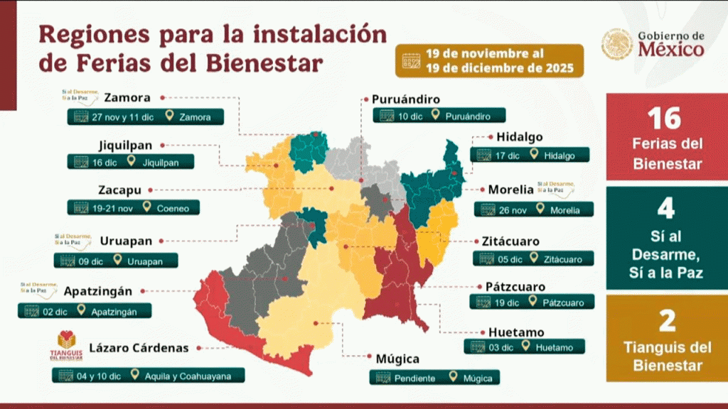 Las próximas jornadas se realizarán en Morelia el 26 de noviembre, Apatzingán el 2 de diciembre, Uruapan el 9 de diciembre y Zamora el 11 de diciembre, todas bajo el mismo mecanismo de entrega voluntaria y confidencial.