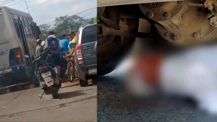 Uruapan, Mich.- 29 de noviembre de 2025.- Entre la vida y la muerte se debate un hombre de la tercera edad, tras ser atropellado y quedar debajo de un camión del servicio urbano en la colonia Ramón Farías.