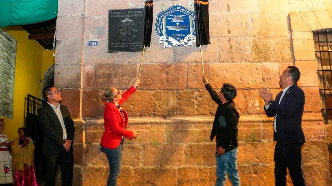 Tras develar una placa en dicho espacio, en donde estuvo acompañada por el secretario general, Javier Cervantes Rodríguez, por el jefe del Departamento de Asuntos Estudiantiles, Julio César González Cabrera, y por el concejal de la mesa directiva de la Casa del Estudiante Nicolaita, Eduardo Miranda Santiago, la rectora felicitó a las y los moradores por esta celebración.