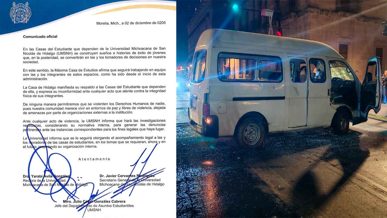 Luego de los acontecimientos registrados la noche del lunes en la Casa del Estudiante Nicolaita, la Universidad Michoacana de San Nicolás de Hidalgo (UMSNH) emitió un comunicado oficial en el que fijó su postura respecto a lo ocurrido.