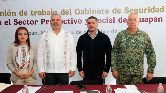 El Gobierno de México trabaja de manera coordinada con el Gobierno de Michoacán, autoridades municipales, legisladores y empresarios para la construcción de la paz y el fortalecimiento de la seguridad en el estado.