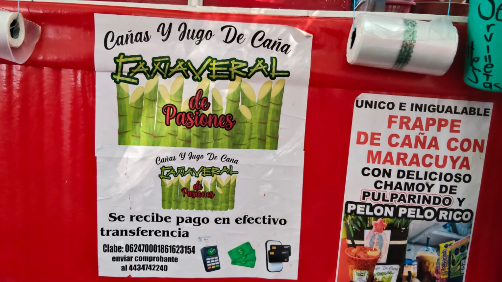 Esta edición de las Fiestas Guadalupanas destaca el frappé de jugo de caña con maracuyá y un toque de pulpa de tamarindo, señaló Verónica Arteaga Sánchez, vendedora del establecimiento “Cañaveral de Pasiones”.
