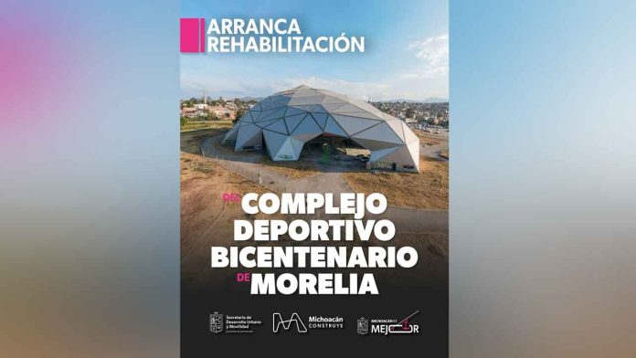 Morelia, Michoacán, 5 de diciembre de 2025.- El titular de la Secretaría de Comunicaciones y Obras Públicas (SCOP), Rogelio Zarazúa, informó que el Gobierno de Michoacán inició los trabajos de rehabilitación integral del auditorio del Complejo Deportivo Bicentenario de Morelia. Esta intervención busca frenar el avanzado deterioro de la estructura, provocado por el abandono institucional, el cual es visible principalmente en el domo de su cubierta.