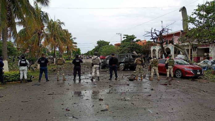 Coahuayana, Michoacán, 6 de diciembre de 2025.- La Guardia Nacional, la Secretaría de la Defensa Nacional, la Secretaría de Marina y la Secretaría de Seguridad Pública estatal, mantienen la seguridad y el control del municipio de Coahuayana, ante un artefacto explosivo accionado.