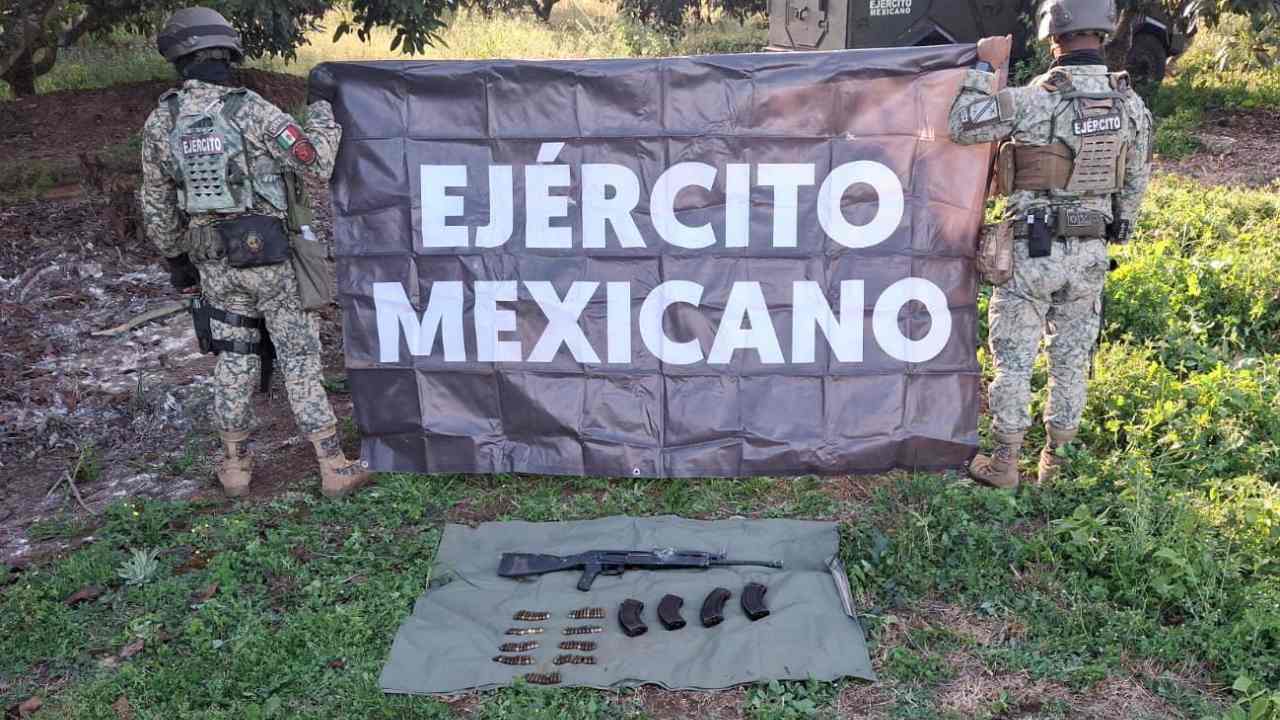 Es de señalar que los explosivos fueron destruidos en el lugar por el Grupo de Respuesta a Emergencias de la Secretaría de la Defensa Nacional, mientras que el material bélico asegurado fue puesto a disposición de las autoridades competentes