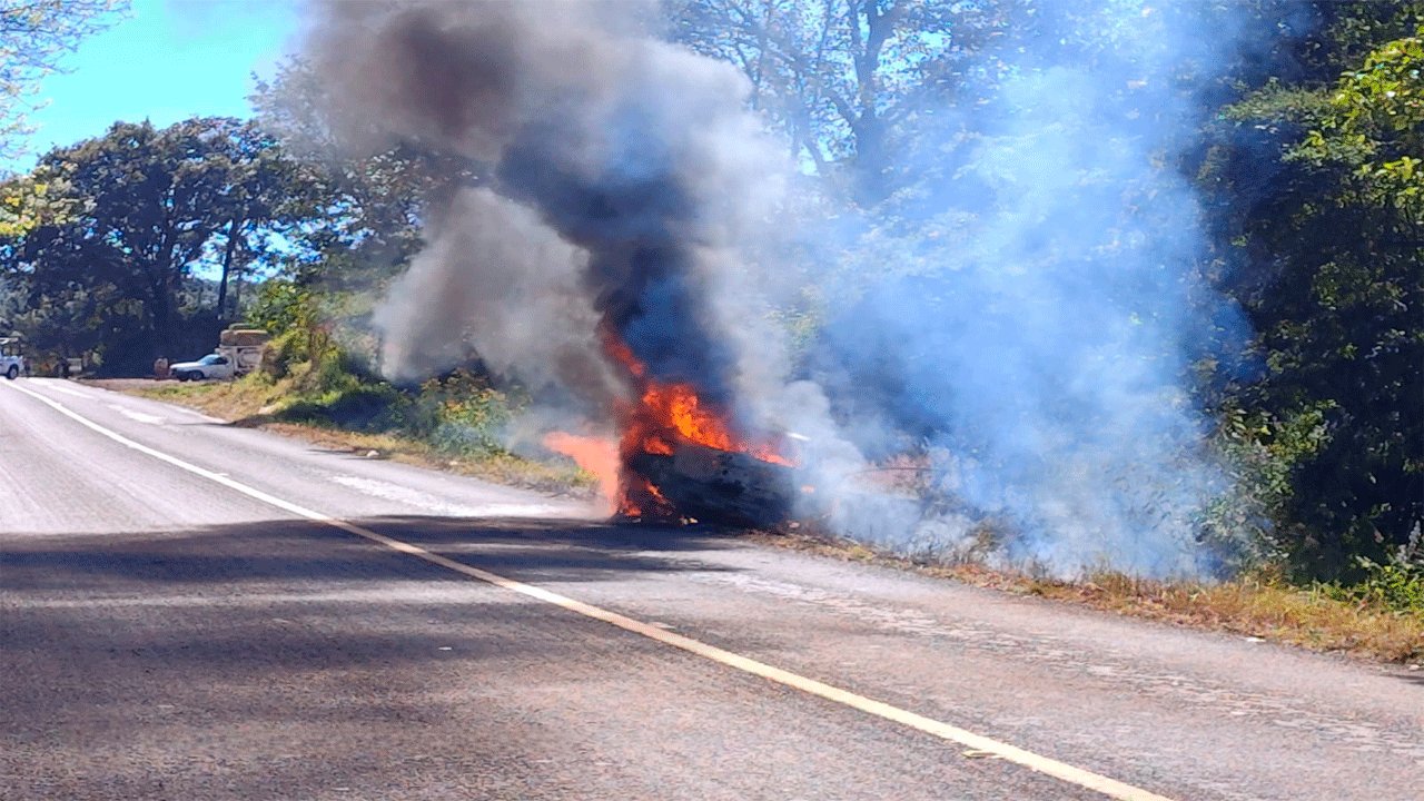 Alrededor de las 11:30 horas, algunos automovilistas reportaron el siniestro a los números de emergencias por lo que al sitio ubicado a la altura del kilómetro 52, a unos metros de la trituradora de piedra se desplazaron elementos de Bomberos Voluntarios de Uruapan, quienes controlaron la situación en minutos.