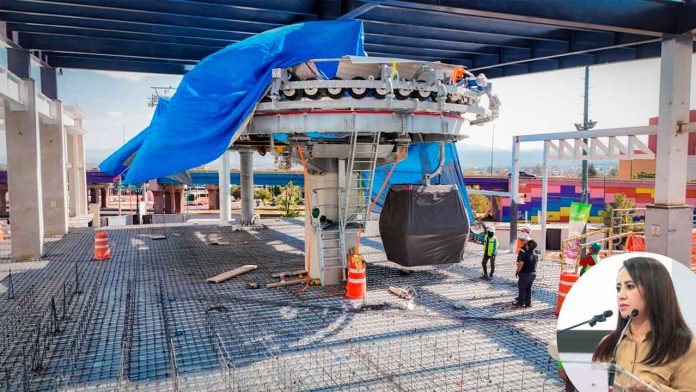 Morelia, Michoacán, 8 de diciembre de 2025.- La construcción del teleférico de Morelia avanza en un 60 por ciento, con un sistema electromecánico fabricado en un 98 por ciento y un avance promedio por estación superior al 50 por ciento, informó la secretaria de Desarrollo Urbano y Movilidad, Gladyz Butanda Macías.