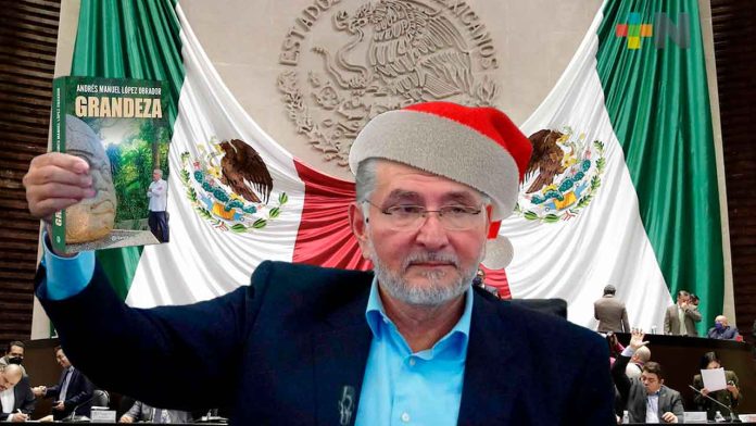 El coordinador de Morena en el Senado, Adán Augusto López Hernández, se disfrazó de ‘Santa Claus’ y adelantó la Navidad para entregar un obsequio especial a los legisladores de su bancada: más de 17 mil ejemplares del libro Grandeza, escrito por el expresidente Andrés Manuel López Obrador.