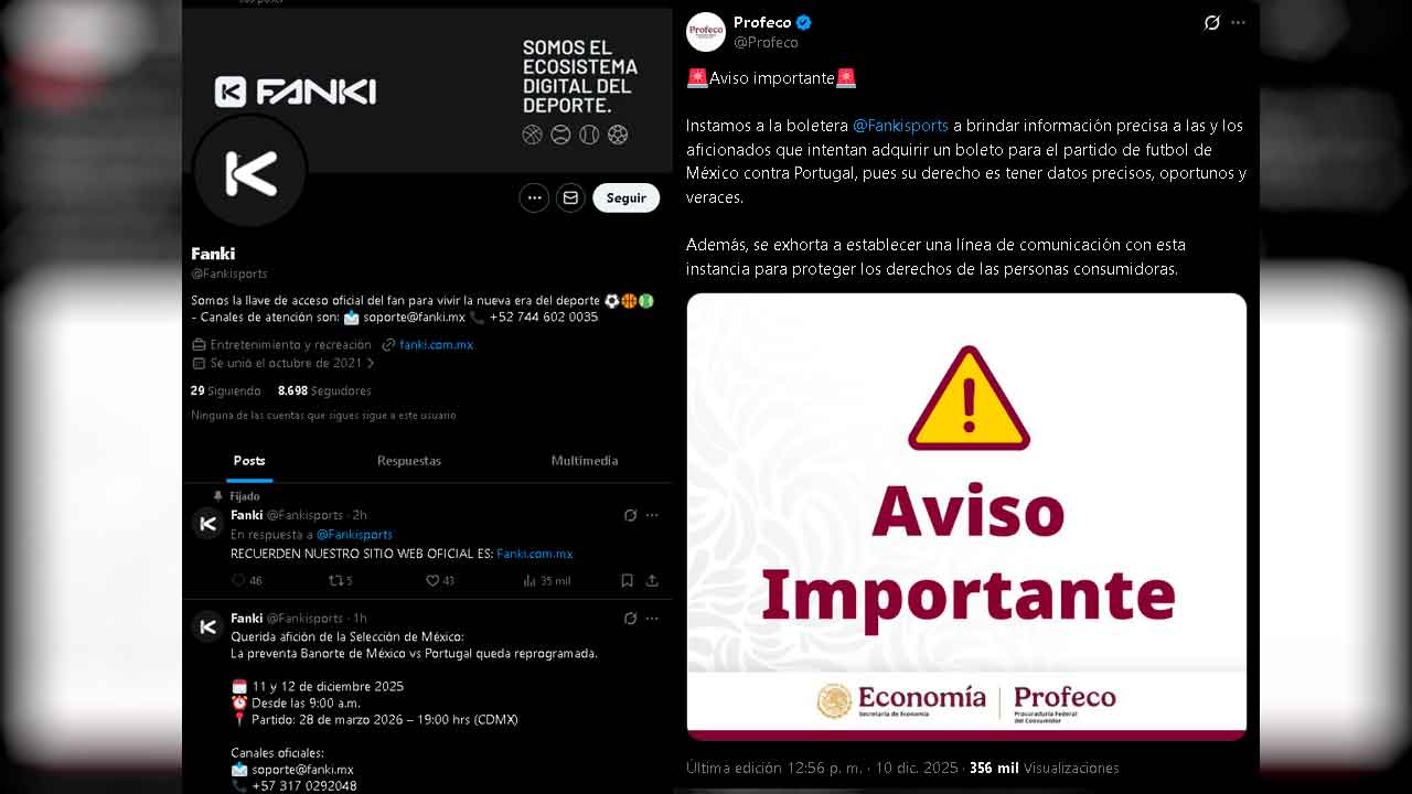 Ante la situación, Profeco emitió un llamado público para que la boletera brinde información veraz y transparente sobre el estado de la venta, los boletos disponibles y los procedimientos oficiales. La institución señaló que los consumidores tienen derecho a contar con datos precisos y actualizados, especialmente en eventos de alta demanda.