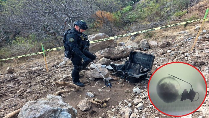 Morelia, Michoacán, 11 de diciembre del 2025.- La Secretaría de Seguridad Pública (SSP), a través del Agrupamiento Especializado en Artefactos Explosivos y Materiales Peligrosos, informó que cerca del mediodía se llevó a cabo el aseguramiento de una granada de gas localizada luego de una excavación realizada en una zona en construcción, localizada en Tres Marías en Morelia, tras un reporte canalizado por el C5i.